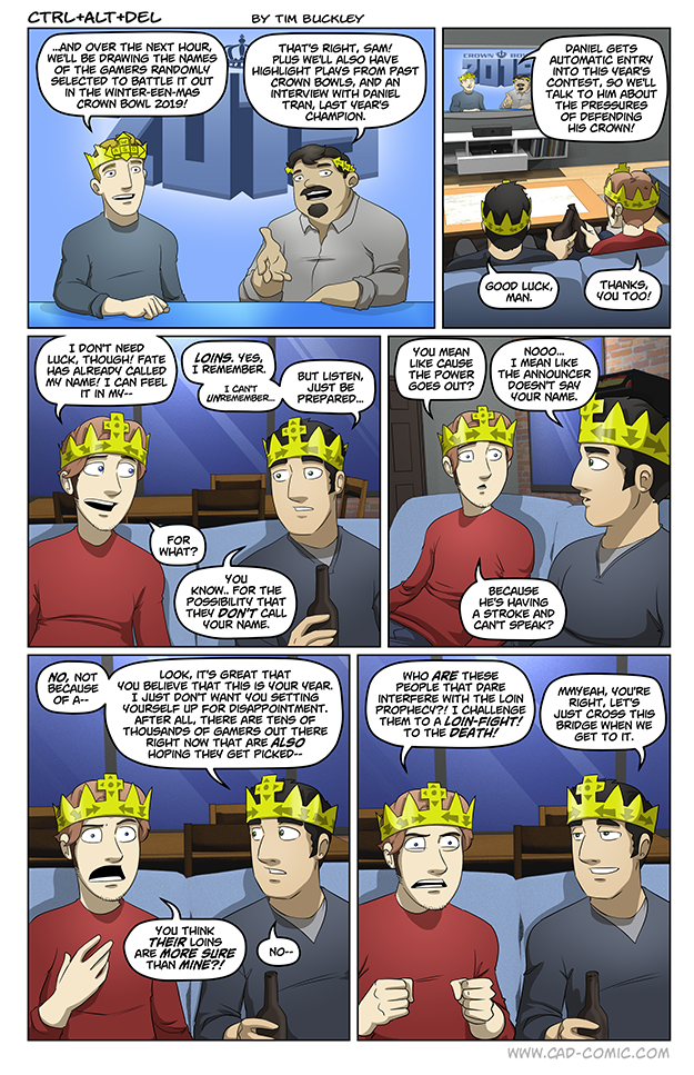 Yeah, the benefit of Winter-een-mas being an established, widely-accepted holiday in this continuity is that I really get to expand the scope of it, which is something I was trending towards in 1.0 (with Ethan losing the crown/his place as THE center of WEMas). There are lots of gamers with varying tastes, and your Winter-een-mas crown should be an extension of that. Celebrate the games that bring you the most joy.
