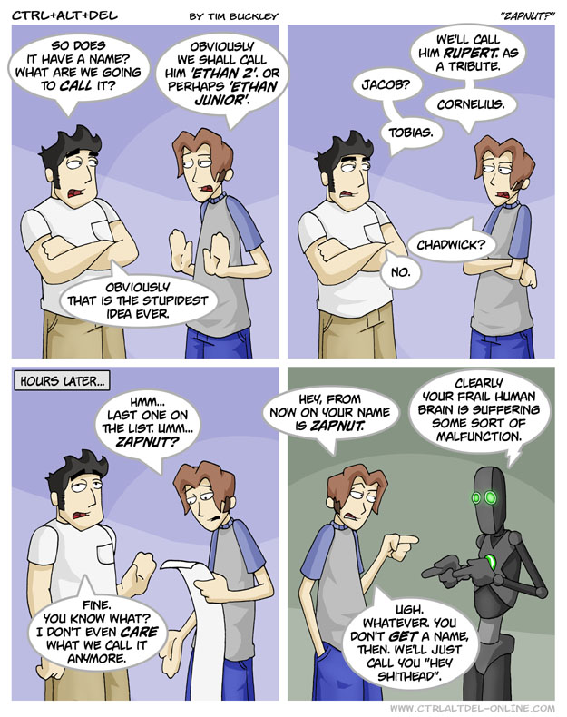 First Previous Random Next Last | 1 Share You are currently browsing the archive for Ctrl Alt Del First Previous Archive Random Next Last | 1 Share Tweet 24 Zapnut? November 14, 2003 by Tim Subscribe Notify of new follow-up comments new replies to my comments Label {} [+] Name* Email* Δ Label {} [+] Name* Email* Δ 1 Comment Oldest Newest Most Voted Inline Feedbacks View all comments HD Shpeck 3 years ago I am curious – is the last name based on something? Because in czech language “Zapnut” means “turned on” 😀