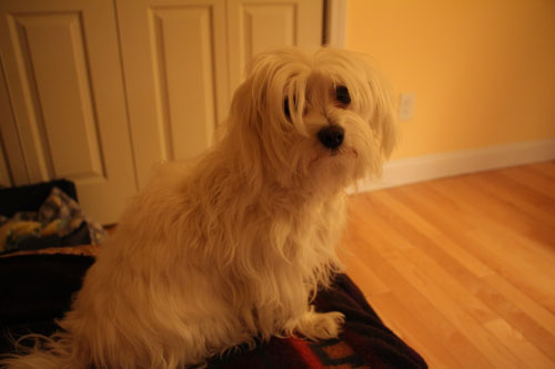 Khloe is a maltese whose former owners were hobby or “backyard” breeders. She was surrendered to the shelter along with some other dogs after they had to vacate their home.