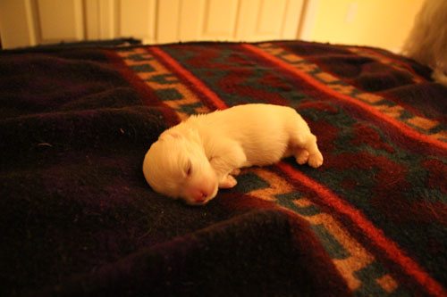 Yesterday we were called in for our first assignment. This is Khloe, and her two-week-old puppy Korra.