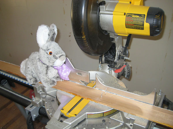Here Fairfax cuts some scrap wood down to size with the miter saw.