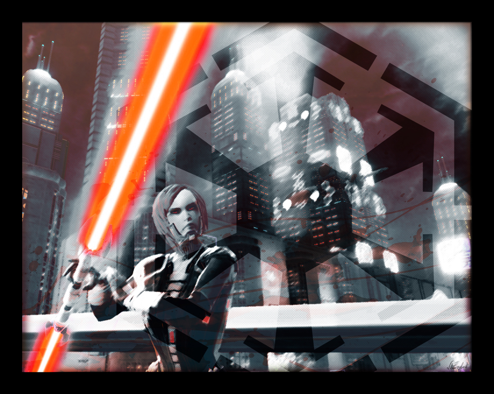 Ross painted over this screenshot to create an almost wraith-like Sith spectre. It’s a little on the dark side (dur hur), but the effect is really cool.